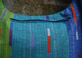 Nicht so schön ist allerdings, daß meine Maschine aus bisher völlig ungeklärten Ursachen beim Aufnähen des Webbandes massenhaft Fehlstiche produziert hat. Ich bin da etwas ratlos, aber zu diesem Zeitpunkt hatte ich überhaupt keine Lust mehr auf den Nahttrenner sondern wollte FERTIG werden...deswegen ist das jetzt eben so. Hauptsache, es hält!